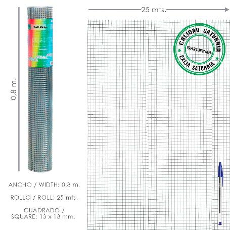 Malla electrosoldada galvanizada 13x13 / 80 cm. rollo 25 metros uso domestico